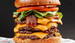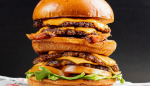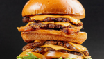 Incrível Smash Burger Quádruplo com pão brioche macio, quatro carnes de 50g tostadas na chapa, quatro queijos secretos, bacon crocante, salada fresca e molho especial.