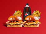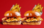 Combo dobrado com 2 Burger Smash Crazy (Pão brioche, 4 smashs artesanais bovinos de 50g, 4 fatias de queijo cheddar, tiras de bacon crocante, alface, tomate e molho especial)