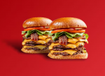 Saboroso Smash Burger Duplo com pão brioche macio, duas carnes de 50g, blend de queijo secreto Johnny, tiras de bacon crocante e nosso molho especial.