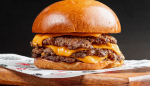 Delicioso Smash Burger Duplo com pão brioche macio, duas carnes tostadas de 50g, blend de queijo secreto Johnny e molho especial.