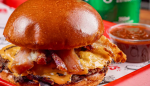 Delicioso Smash Burger Triplo com pão brioche fresco, três carnes de 50g tostadinhas na chapa, 3 camadas de queijo Johnny e molho especial.